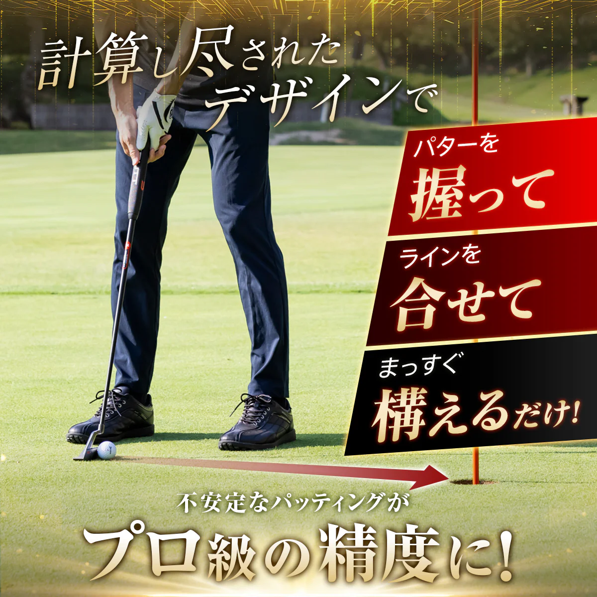 方向性のズレを抑えて狙ったラインにまっすぐ打ち出せるよう設計されたゴルフパターです。